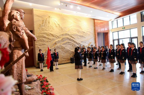 4月3日,合肥市六安路小學翠微分校的少先隊員和老師代表在蜀山烈士陵園緬懷先烈。