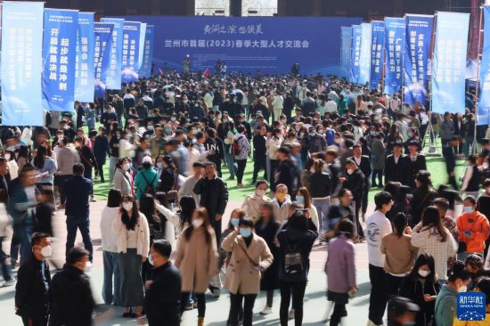 4月8日拍攝的蘭州市首屆(2023)春季大型人才交流會現(xiàn)場。