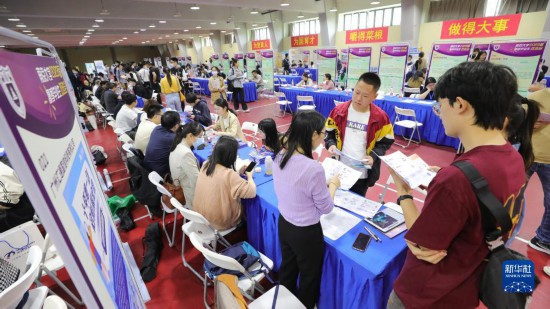 這是4月16日拍攝的南京大學(xué)2023屆畢業(yè)生春季雙選會現(xiàn)場。