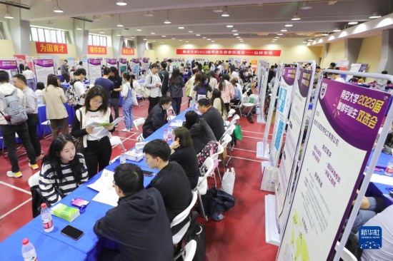 當(dāng)日,南京大學(xué)2023屆畢業(yè)生春季雙選會(huì)在南京大學(xué)仙林校區(qū)舉辦。雙選會(huì)面向校內(nèi)外學(xué)生開放,吸引了來自北京、上海、南京等地的180家企事業(yè)單位參會(huì),提供近1.5萬個(gè)崗位。