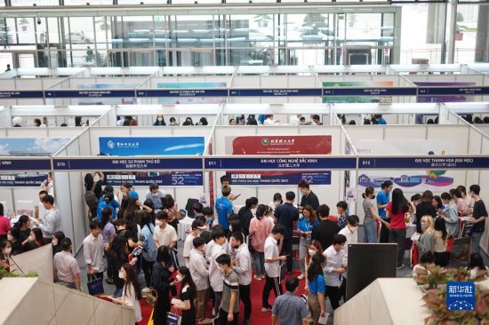 4月22日,在位於越南首都河內(nèi)的國家會議中心,留學(xué)咨詢者絡(luò)繹不絕。新華社記者 胡佳麗 攝
