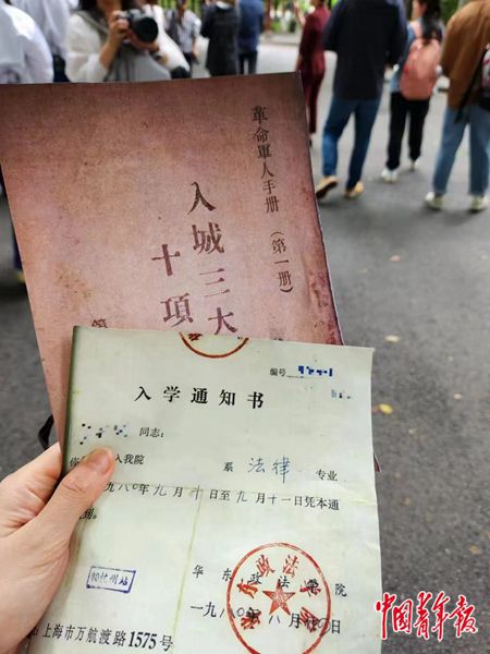 記者注意到,這堂思政課上,像聶光墀這樣一身血衣突然跌倒的“加戲”互動內(nèi)容還有很多。比如,在1980年華政復(fù)校當(dāng)天,觀眾會與學(xué)生一樣,收到一封封華政園的錄取通知書。當(dāng)時,全校要招收400多名新生,然而校舍匱乏問題凸顯。校黨委慎重決定,將原來的校長辦公樓即4號樓讓給教師和學(xué)生使用,將其他辦公樓讓給學(xué)生住宿。就這樣,樓前草坪上搭起5頂帳篷供校長、教師辦公使用,從此“帳篷精神”被傳為佳話。