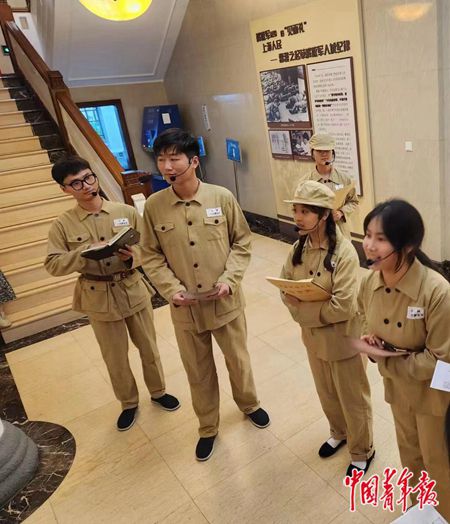 學(xué)生們在華政交誼樓內(nèi)演出解放軍解放上海前的一幕。