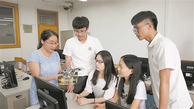 深職大電子信息工程技術(shù)專(zhuān)業(yè)教師教學(xué)創(chuàng)新團(tuán)隊(duì)成員王靜霞教授(左一)正在指導(dǎo)學(xué)生。受訪單位供圖