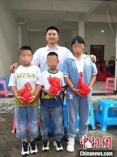 諶華與他救起的3名少年。湖南鐵路科技職院 供圖