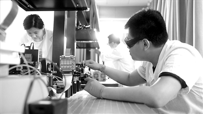 北京理工大學師生在電子封裝技術實驗室進行集成電路芯片倒裝焊固態(tài)互連試驗北京理工大學供圖