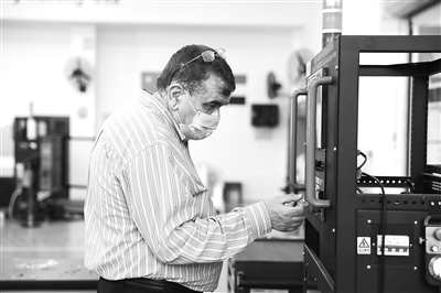 在位於埃及首都開羅的艾因夏姆斯大學(xué)魯班工坊,工作人員查看設(shè)備工作情況。新華社記者 隋先凱攝