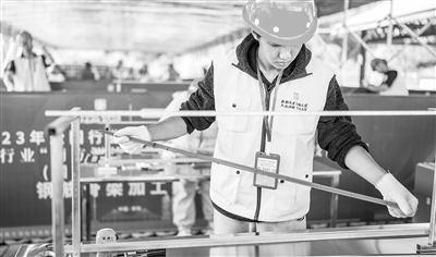 圖為選手參加鋼筋骨架加工項(xiàng)目比賽。新華社記者 陶亮攝