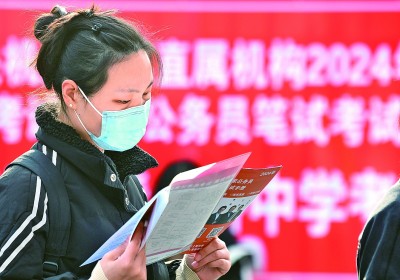 11月26日,中央機(jī)關(guān)及其直屬機(jī)構(gòu)2024年度考試錄用公務(wù)員公共科目筆試在全國各考區(qū)統(tǒng)一舉行。圖為江蘇省無錫市清名橋中學(xué)考點(diǎn),一名考生在等候進(jìn)場時(shí)復(fù)習(xí)。新華社發(fā)