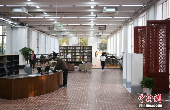 12月6日,讀者在浙江圖書館大學路館內(nèi)借閱學習。近日,位於浙江杭州的浙江圖書館大學路館歷經(jīng)四年的館舍修繕后面向公眾重新開放。該館於1932年作為浙江圖書館總館正式開放,如今是全國重點文物保護單位。