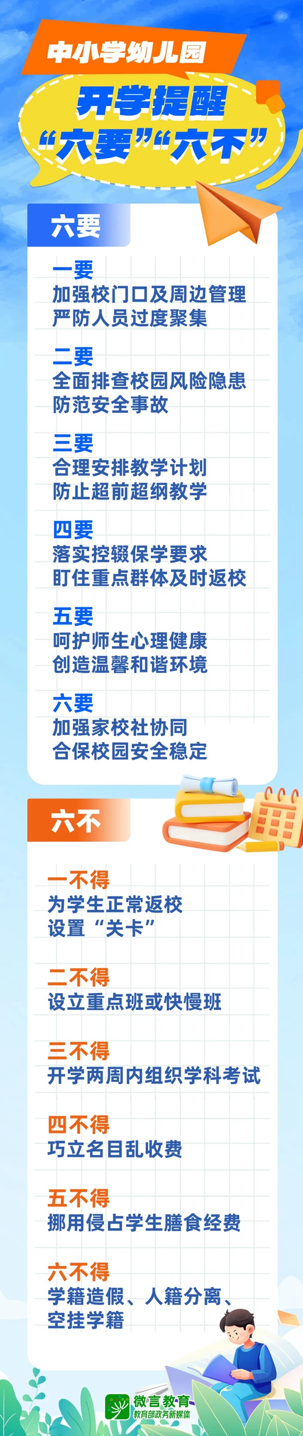 一圖看懂!中小學(xué)幼兒園開學(xué)提醒“六要”“六不”