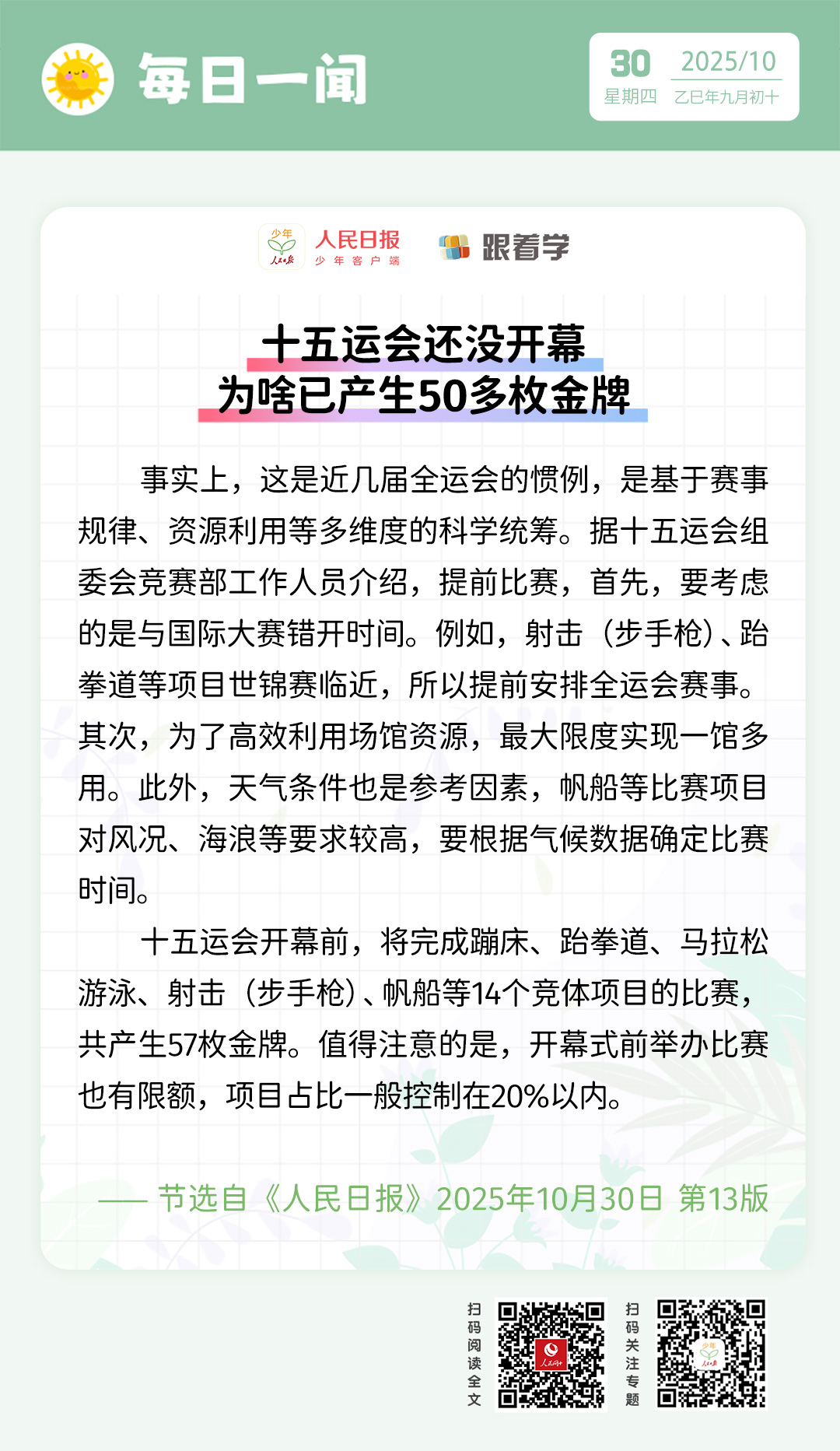每日一聞丨十五運(yùn)會(huì)還沒開幕 為啥已產(chǎn)生50多枚金牌