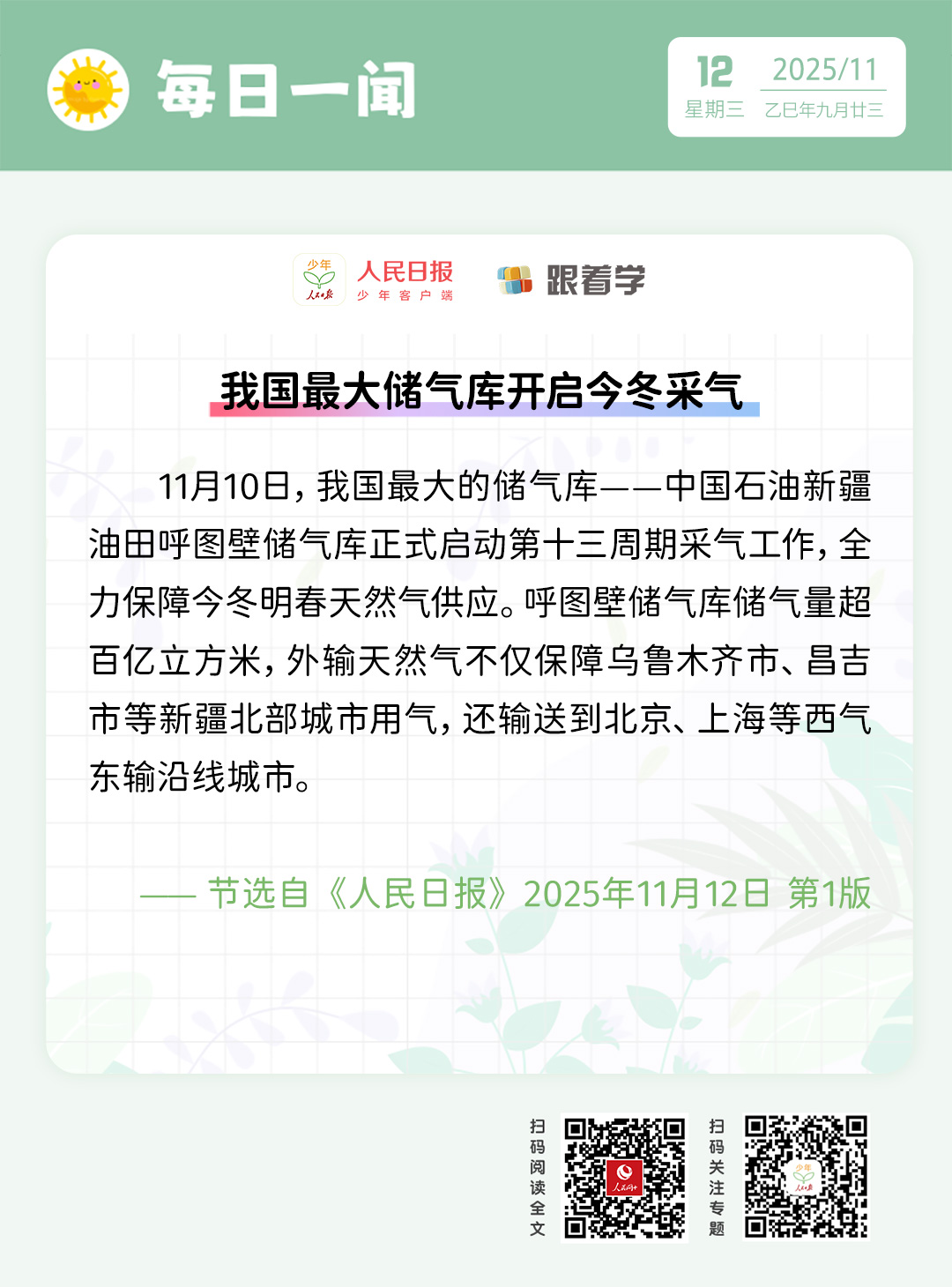 每日一聞丨我國(guó)最大儲(chǔ)氣庫(kù)開(kāi)啟今冬採(cǎi)氣
