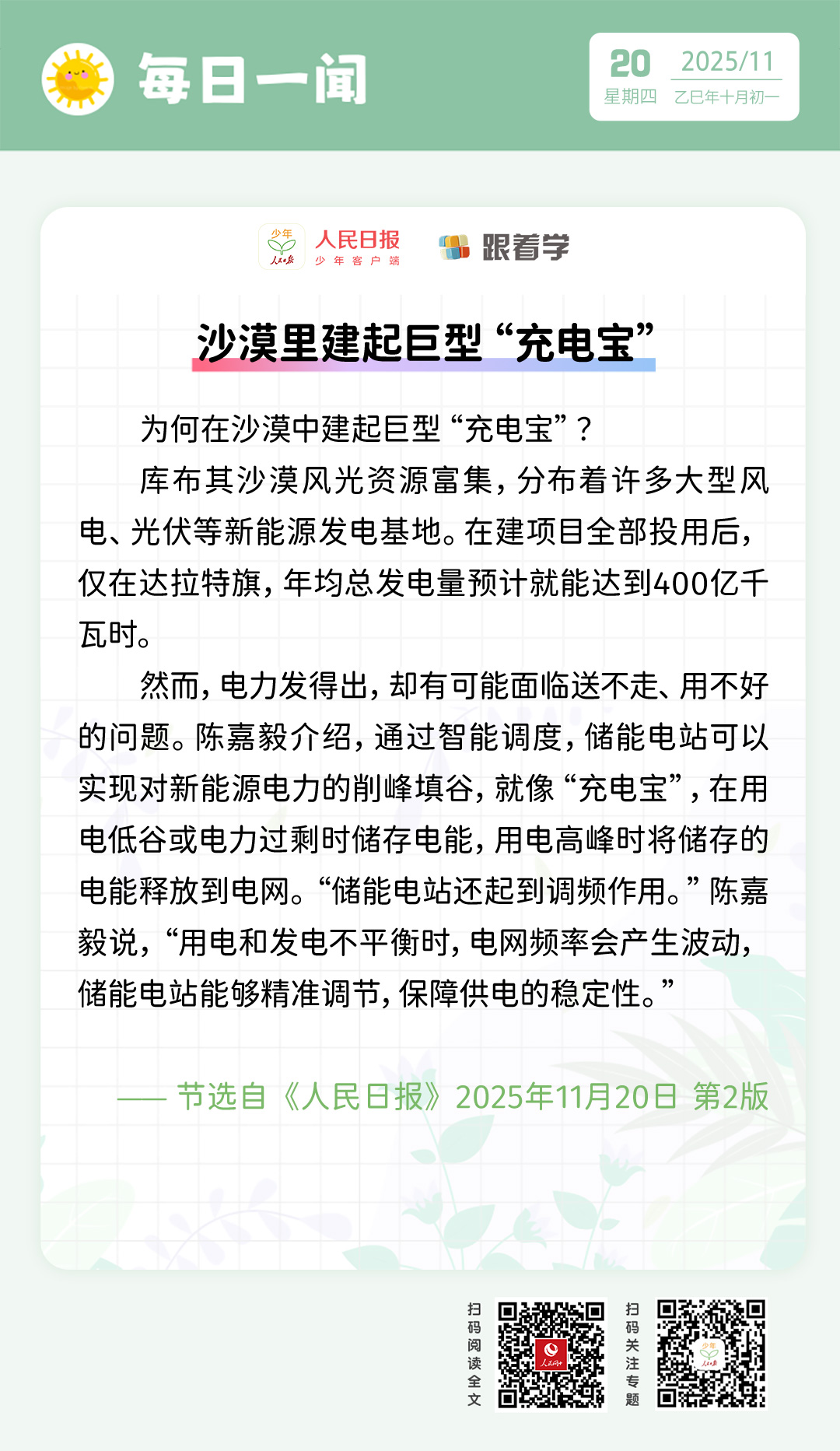 每日一聞丨沙漠裡建起巨型“充電寶”