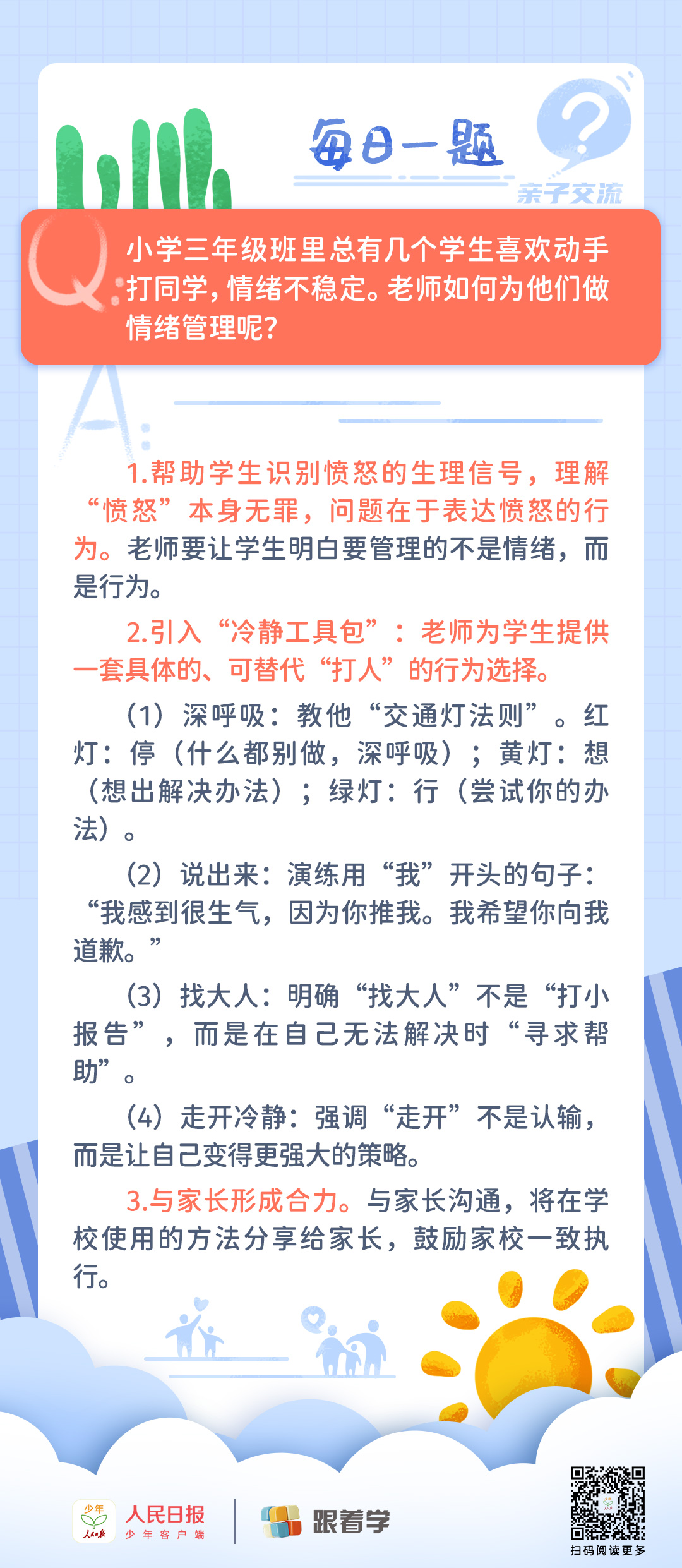 每日一題丨老師如何為愛打人的低年級小學生做情緒管理訓練?