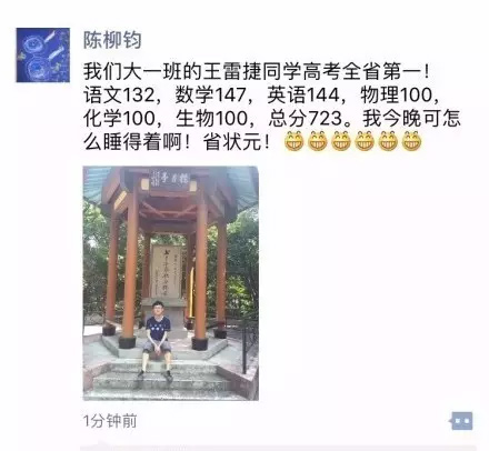 浙江新高考各類別各段分?jǐn)?shù)線及考生成績昨晚揭曉。 到底是何方神圣,拿到2017年浙江新高考的最高分? 答案就是他!來自諸暨中學(xué)高三(1)班的王雷捷同學(xué),他以總分723分(滿分750分),位次號列全省第一。 班主任陳柳鈞的朋友圈 圍觀一下,他的高考成績單: …[詳細(xì)]