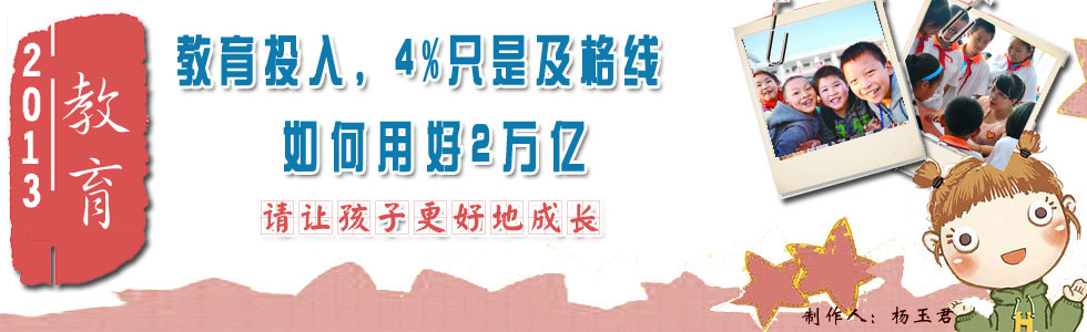 編者:2012年我國年度財政性教育經(jīng)費支出總額超過2萬億元,占GDP比重首次達到4%。2萬億的教育投入怎么用、怎么管,引起了社會各界的廣泛討論。也有人大代表指出,4%的教育投入只是一個及格線,僅滿足了基本需求,還沒有滿足充分需求,教育投入仍需進一步加大。