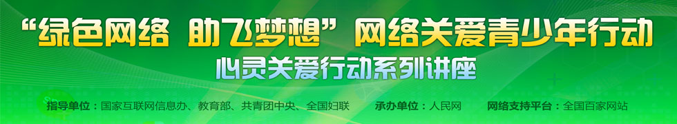 10月下旬至12月下旬,國(guó)家互聯(lián)網(wǎng)信息辦、教育部、團(tuán)中央、全國(guó)婦聯(lián)四部門(mén)指導(dǎo)全國(guó)百家網(wǎng)站發(fā)起“綠色網(wǎng)絡(luò) 助飛夢(mèng)想”——網(wǎng)絡(luò)關(guān)愛(ài)青少年行動(dòng)!靶撵`關(guān)愛(ài)行動(dòng)系列講座”是網(wǎng)絡(luò)關(guān)愛(ài)青少年系列行動(dòng)之一,針對(duì)青少年各個(gè)成長(zhǎng)階段的心理問(wèn)題,邀請(qǐng)相關(guān)專家學(xué)者在人民網(wǎng)舉辦系列講座,就青少年如何增強(qiáng)心理素質(zhì)、調(diào)整不良情緒、戒除網(wǎng)癮、提高網(wǎng)絡(luò)素養(yǎng)等進(jìn)行輔導(dǎo),幫助青少年以積極陽(yáng)光的心態(tài),面對(duì)學(xué)習(xí)生活的困難挫折,健康快樂(lè)成長(zhǎng)。 講座總共擬為15講,分三大部分,其中針對(duì)中學(xué)生和社會(huì)青年為8講,針對(duì)家長(zhǎng)為3講,針對(duì)教師為4講。每場(chǎng)講座時(shí)間為90—100分鐘,每周播出兩講,敬請(qǐng)關(guān)注!
