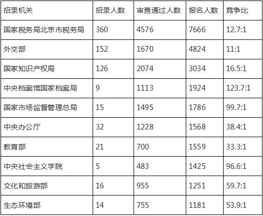 【截至18日9:00】2020國考北京地區(qū)報名最熱門的十大招錄機關(guān)