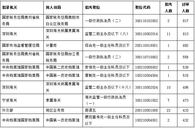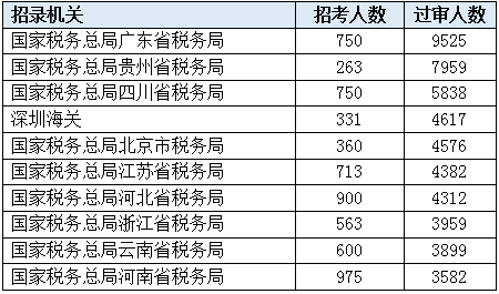 2020國(guó)考報(bào)名過(guò)審人數(shù)最多前十職位【截至18日9時(shí)】