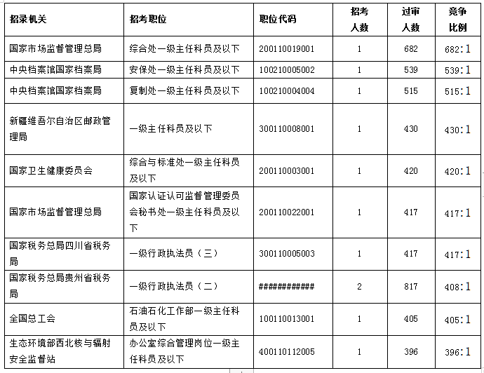 2020國(guó)考報(bào)名競(jìng)爭(zhēng)最激烈前十職位【截至18日9時(shí)】