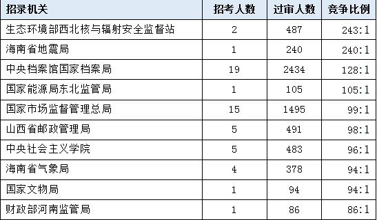 2020國(guó)考報(bào)名競(jìng)爭(zhēng)最激烈前十部門(mén)【截至18日9時(shí)】