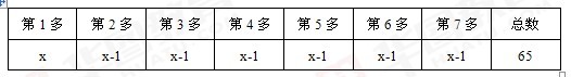 依據(jù)上表可列出方程,x+6×(x-1)=65,解得x=10.1。最少為10.1人,取整為11人。因此,本題的正確答案為B選項。
