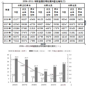 D.2006年立案涉及的土地面積略小于2010年與2011年立案涉及土地面積之和