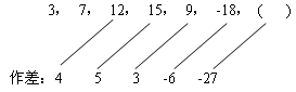 中公解析:對(duì)于這一題,首先觀察整體趨,先遞增,后遞減,按理是先考慮和數(shù)列,簡(jiǎn)單心算便會(huì)發(fā)現(xiàn)加和之后沒(méi)有規(guī)律,在沒(méi)辦法的情況下,強(qiáng)行作差,得到4,5,3,-6,-27,雖然也沒(méi)明顯的規(guī)律,但是,利用構(gòu)造網(wǎng)絡(luò)斜線一畫(huà)上,馬上就能看到3倍的關(guān)系,所以,空處應(yīng)填-27*3=-81,答案選C。