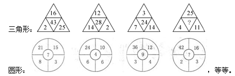 記得在2008年的國(guó)考中出現(xiàn)過(guò)一道三角型的數(shù)字推理題,隔了兩年,浙江省的省考也首次出現(xiàn)了此種題型,并且在數(shù)字推理題中的比重達(dá)到50%(10題中考查5題),當(dāng)年使很多浙江的考生感覺(jué)措手不及,到了現(xiàn)在,再來(lái)細(xì)細(xì)回想,細(xì)細(xì)研究,其實(shí)它并不難,相反,會(huì)更簡(jiǎn)單一些。對(duì)于三角型而言,就是去尋找,三個(gè)角上的數(shù)據(jù)如何進(jìn)行簡(jiǎn)單的數(shù)學(xué)運(yùn)算(加減乘除多次方等)得到中間的數(shù)值。對(duì)于圓圈型而言,只是比三角型多了一個(gè)數(shù)據(jù),是5個(gè)數(shù)據(jù),即去尋找,四周的4個(gè)數(shù)據(jù)如何進(jìn)行簡(jiǎn)單的數(shù)學(xué)運(yùn)算(加減乘除多次方等)得到中間的數(shù)值。當(dāng)然,4個(gè)數(shù)據(jù)直接運(yùn)算會(huì)比較麻煩,見(jiàn)意將4個(gè)數(shù)據(jù)兩兩分開(kāi)運(yùn)算,再組合。2012年除了考查加、減、乘、除、多次方等5種運(yùn)算外,還考查了最小公倍數(shù)的問(wèn)題。如第40題。
