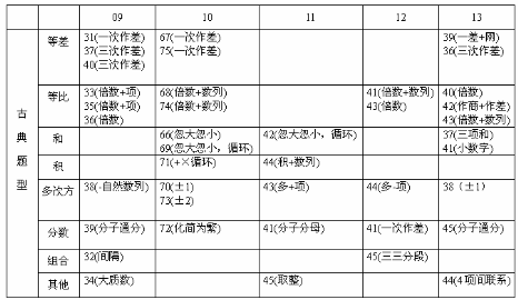 一、分析古典型,下表是最近五年古典型數(shù)字推理的所有考情分析: