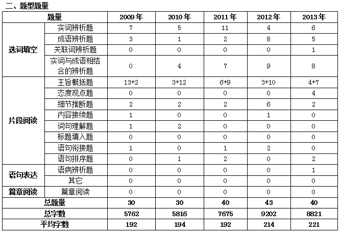 (1)2014年,預(yù)計(jì)選詞填空部分總題量為20題,占言語模塊總題量的二分之一。