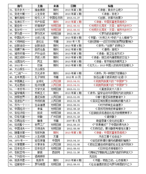 2013年陜西省考言語理解與表達(dá)模塊選材分析統(tǒng)計(jì)表