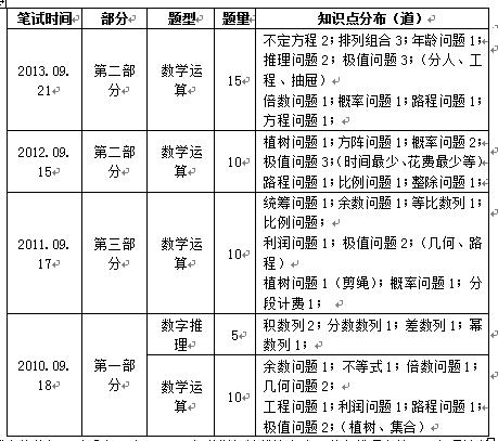 一、2010—2013年數(shù)量關(guān)系題型題量及知識(shí)點(diǎn)分