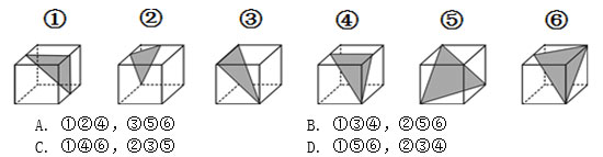 (1)觀察六個(gè)圖形,每一個(gè)圖形均為一個(gè)立方體中含有一個(gè)陰影三角形,那再根據(jù)此題的類型“圖形的分組”可知此題的關(guān)鍵在于找出幾個(gè)三角形的特點(diǎn);