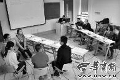 學(xué)生圍在一起討論,專家坐在一旁聆聽(tīng)