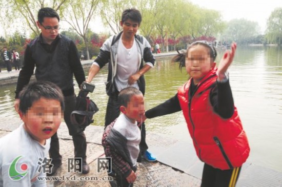 4月4日12時(shí),兩男一女和三名兒童在洛陽(yáng)市隋唐城遺址植物園中心廣場(chǎng)人工湖東側(cè)的岸邊戲水。兩名男孩兒在用水槍互相噴射,其中一名男孩兒從湖中取水時(shí),因重心不穩(wěn),一頭栽入湖中。