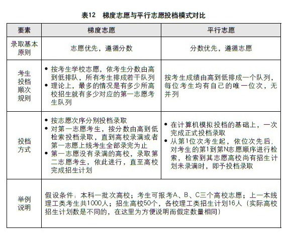 在上一篇中分別介紹了梯度志愿和平行志愿投檔錄取模式,也許那種概念式的介紹太過專業(yè)化和缺乏對比,考生和家長在理解上會(huì)有一定困難。在這里通過