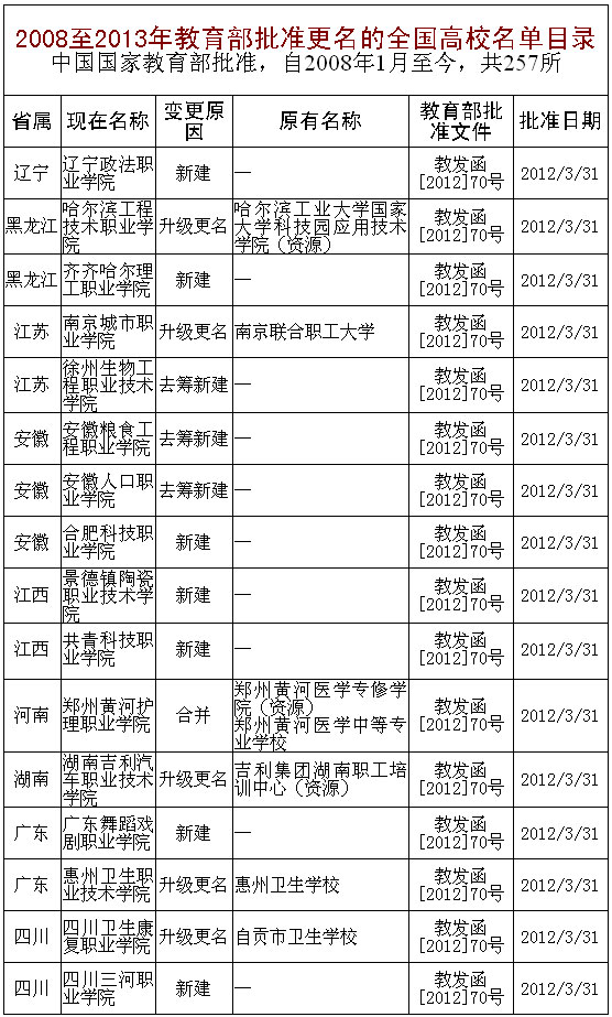 2008至2013年教育部批準(zhǔn)更名的全國高校名單目錄【5】