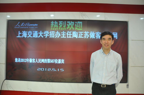主持人:各位網(wǎng)友大家好,您現(xiàn)在正在收看的是人民網(wǎng)教育頻道2013年全國(guó)高校招生系列訪談節(jié)目。本期我們邀請(qǐng)到演播室的嘉賓是上海交通大學(xué)招生辦主任陶正蘇教授。