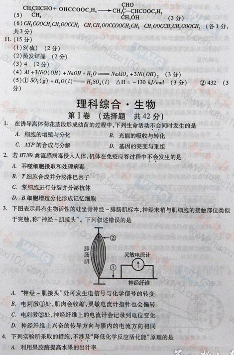 2013高考四川理科綜合試題及答案(清晰版)【12】