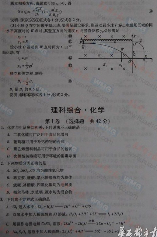 2013高考四川理科綜合試題及答案(清晰版)【7】