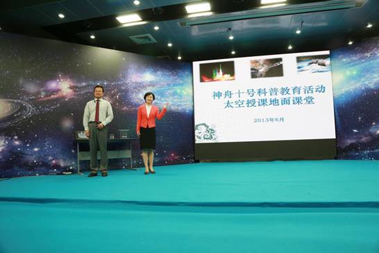 中國人民大學(xué)附屬中學(xué)地面課堂, 具備與神舟十號航天員雙向音視頻通話互動能力,地面課堂內(nèi)的學(xué)生不僅能夠看到王亞平授課的清晰畫面,身在太空的王亞平也能觀看到和收聽到課堂內(nèi)學(xué)生們的實(shí)時反應(yīng),同學(xué)和老師可以像平常課堂一樣進(jìn)行互動。