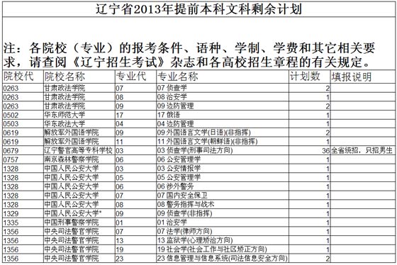 遼寧省2013年提前本科批次剩余計(jì)劃查詢