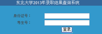 東北大學(xué)2013年錄取結(jié)果查詢系統(tǒng)