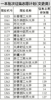 一本批次征集志愿計(jì)劃(文史類)