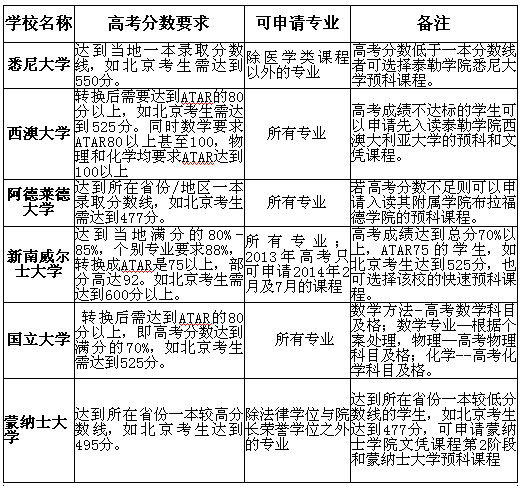 澳洲各大名校對(duì)高考分?jǐn)?shù)的要求