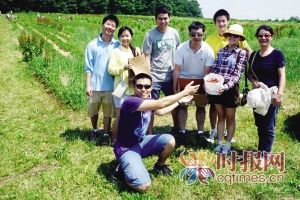 劉贊(右二)與俱樂部同學們在郊區(qū)農場定期聚會,在休閑的同時交流學習經驗