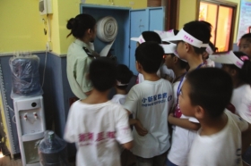 小報童們參觀了消防車、試著穿消防服、試著疏散到逃生帳篷。一些小報童膽子小,站在車上不愿嘗試,最后在消防員的指導(dǎo)下,終于學(xué)會了如何操作。