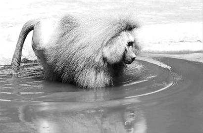 狒狒在池塘內(nèi)戲水降溫